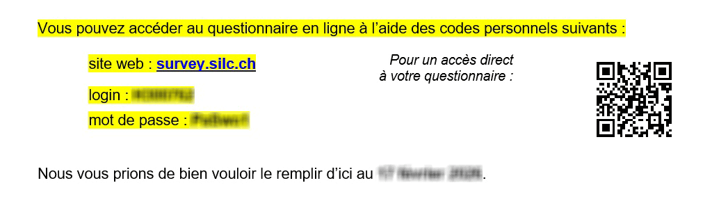 En cliquant sur le bouton ci-dessous, vous pouvez vous connecter à votre questionnaire en ligne (vous avez besoin de votre login et mot de passe que vous avez reçus par courrier).