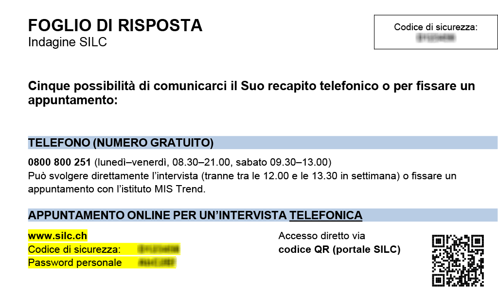 Benvenuto/a all'Indagine sui redditi e sulle condizioni di vita (SILC) dell'Ufficio federale di statistica (UFS), che permette a diverse migliaia di economie domestiche e di persone (dai 16 anni in su) di rispondere ad un'ampia varietà di tematiche tramite un'intervista telefonica o online.